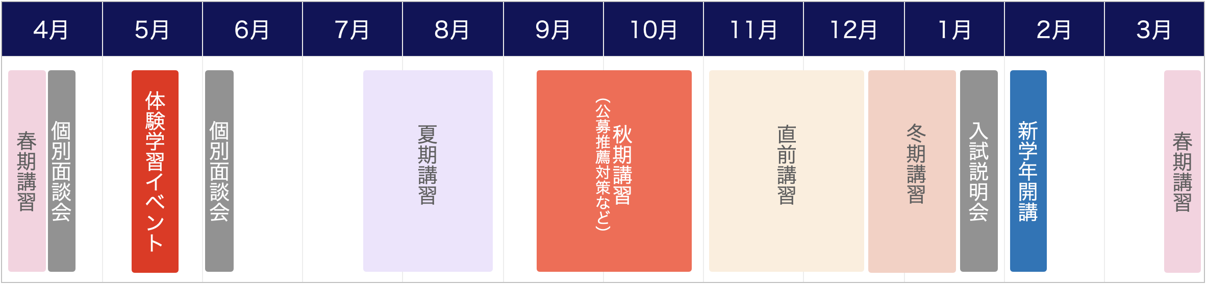 現在の学習状況を十分にお聞かせいただき、頂いた情報を元に最適なご説明をさせていただきます。学習方法、進路選択等にお悩みの方はお気軽にご相談ください。